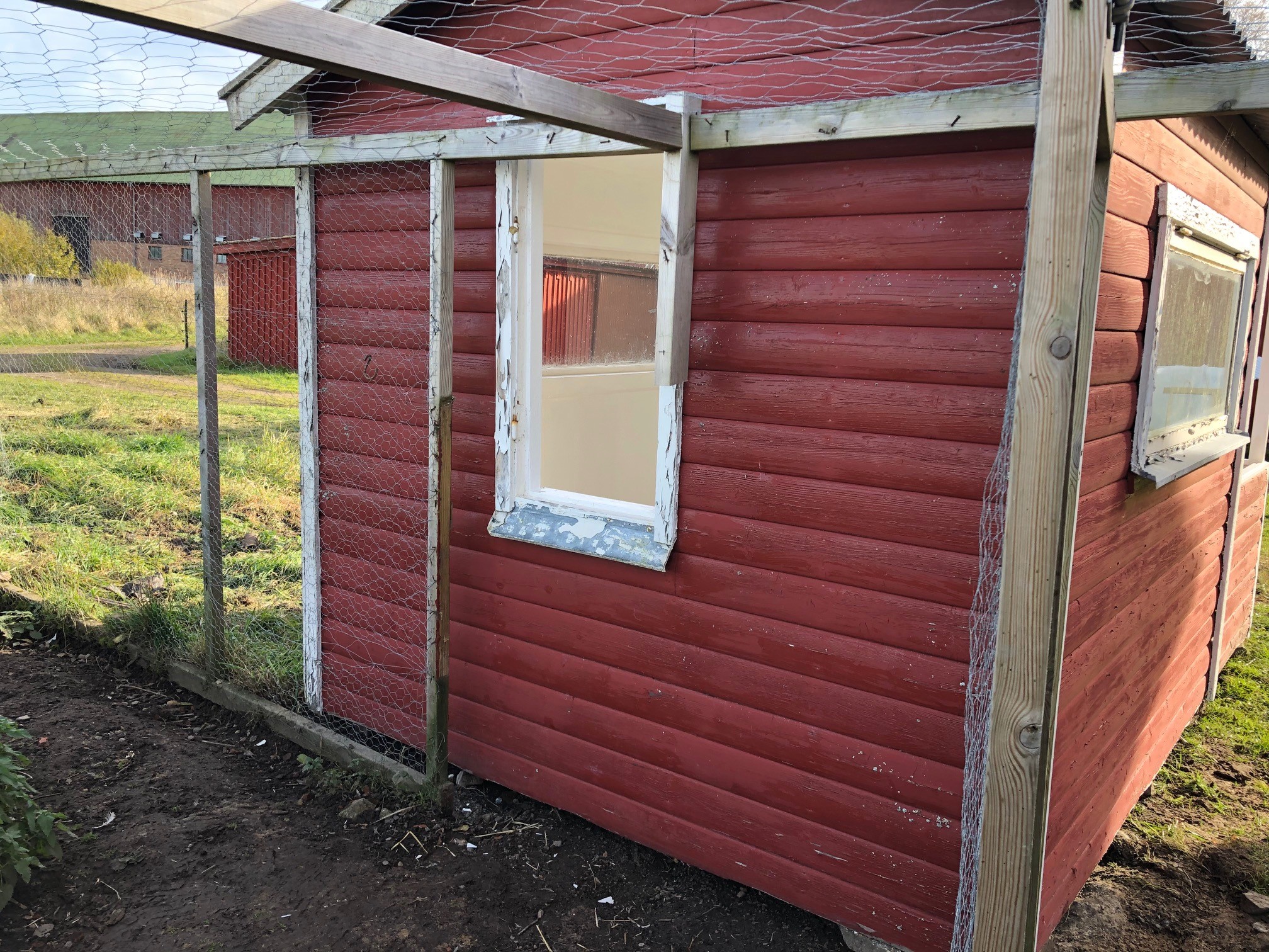 Sen behöver ju hönsen kunna ta sig in och ut till sin hönsgård också, och då passar ju baksidans fönster ypperligt.