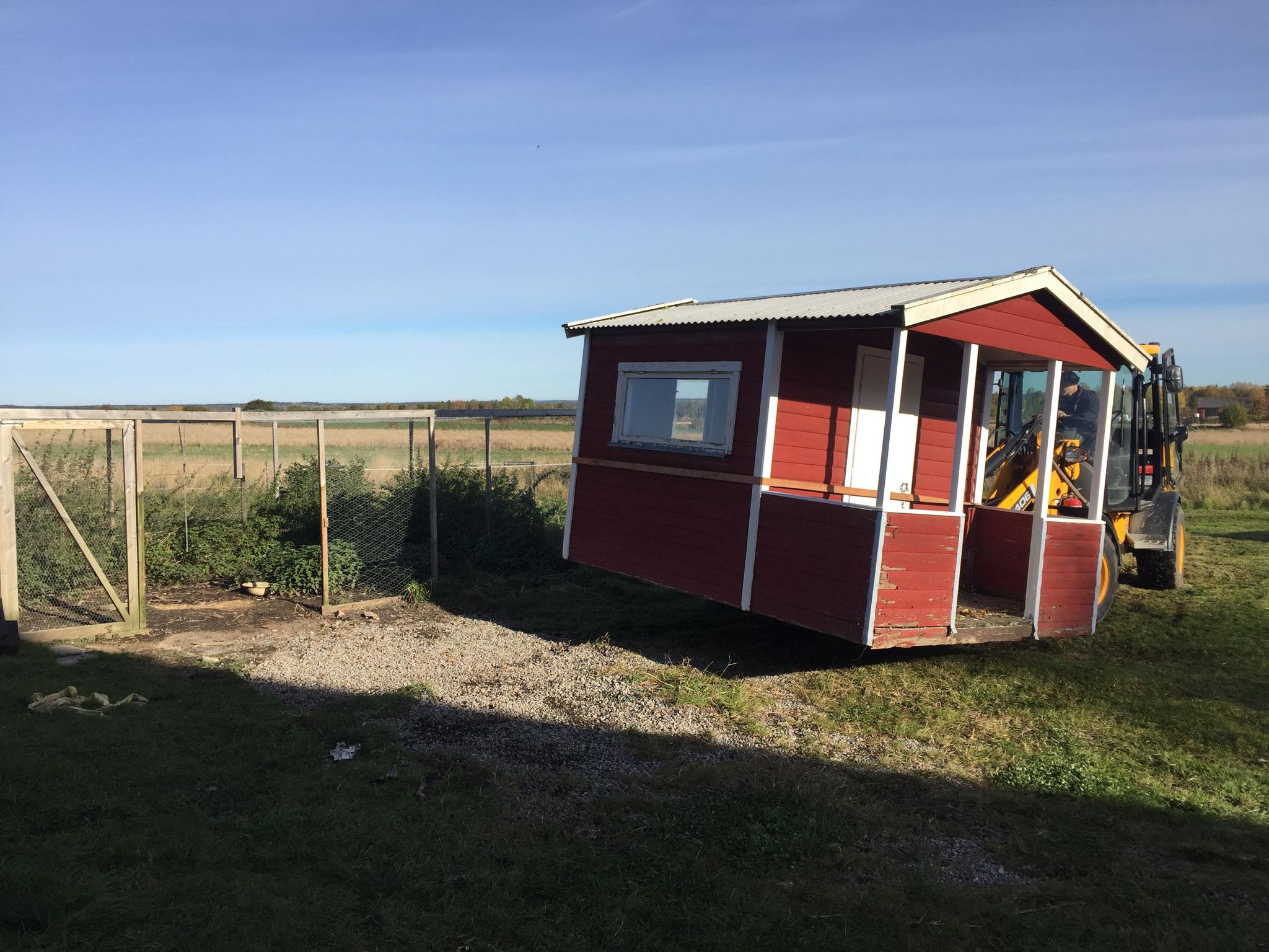 Äntligen var det dags för hönsen att få sitt nya hus installerat! Jag missade tyvärr det mest spännande momentet när huset skulle förflyttas från Nils och Marshas trädgård och upp till hönsgården. Axel var otroligt kommunikativ i vanlig ordning och rapporterade ”Jodå. Det gick.” när jag höll på att dö av nyfikenhet på jobbet. Lyckligtvis tog han några bilder också!