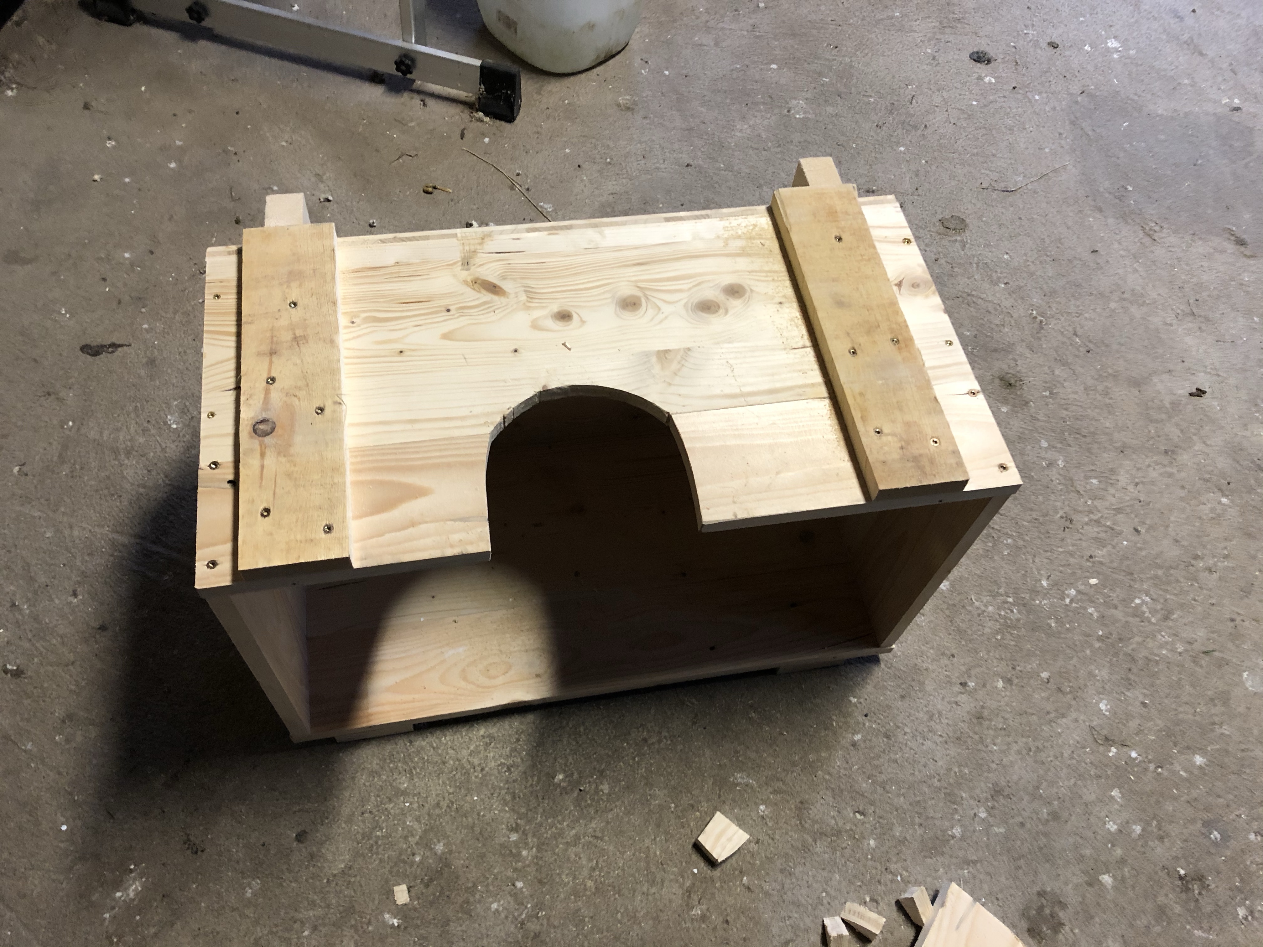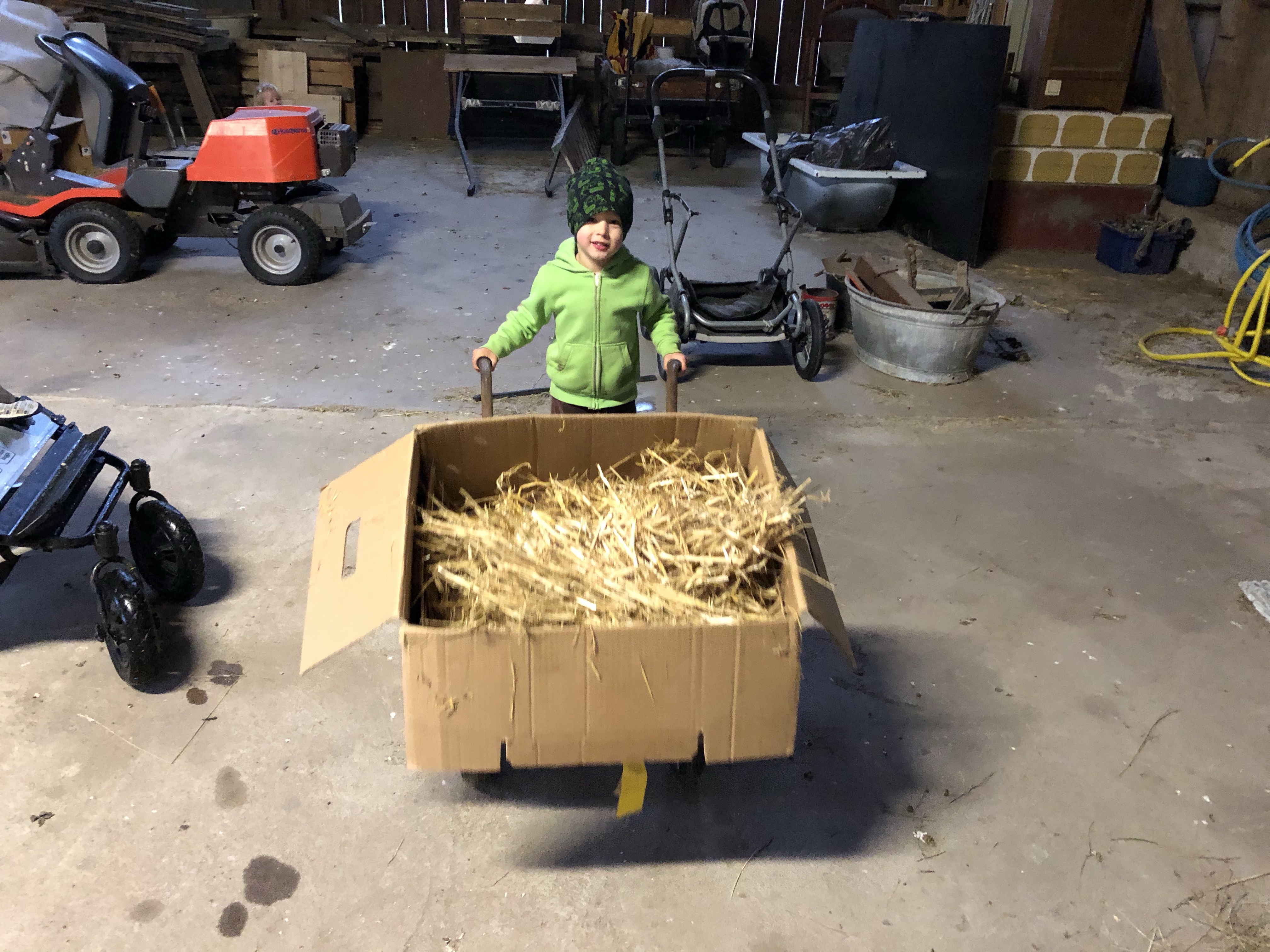Sen la vi in spån i kaninboxen och hämtade halm till huset.