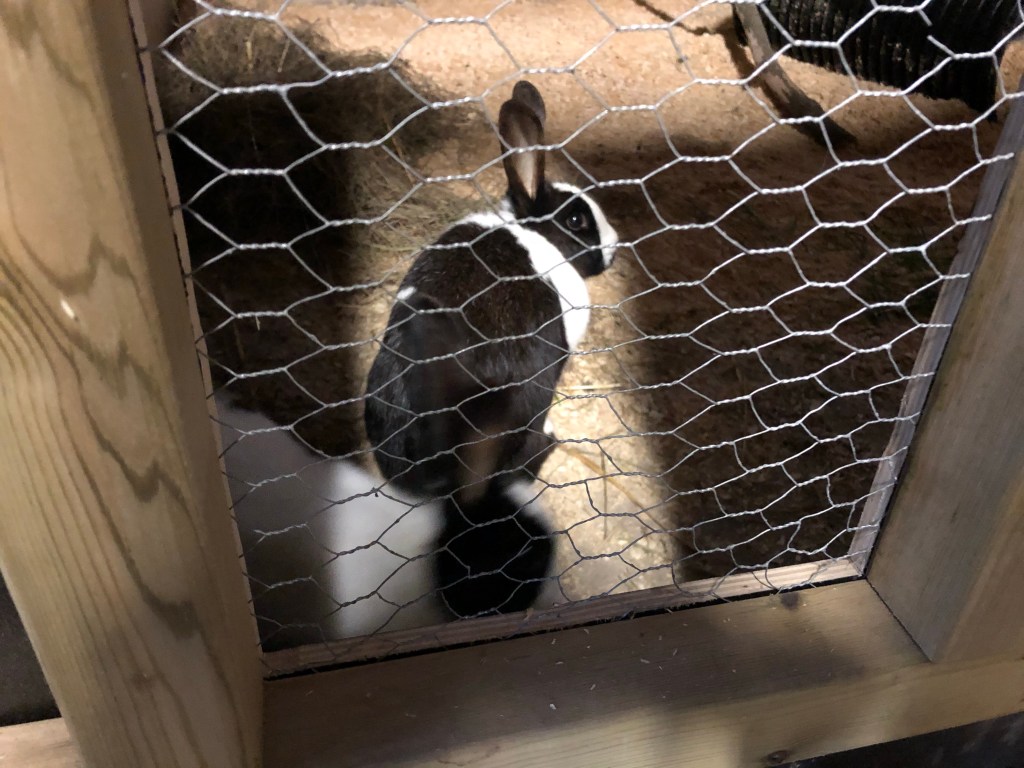 När vi var nöjda hämtade vi in kaninerna också, det var ju inte så roligt för dem att sitta ute i sitt lilla sommarhus när regnet öste ner. De verkade tycka det var ganska spännande att undersöka boxen.
