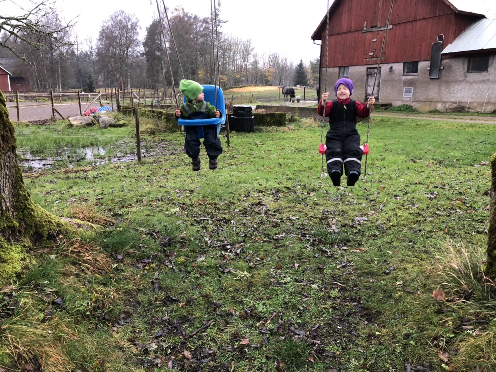 Även den här söndagen började med jakt för Axels del, han tog en promenad med bössan i högsta hugg men hittade inget att sikta på. Jag och barnen tog hand om djuren, mockade och gungade.