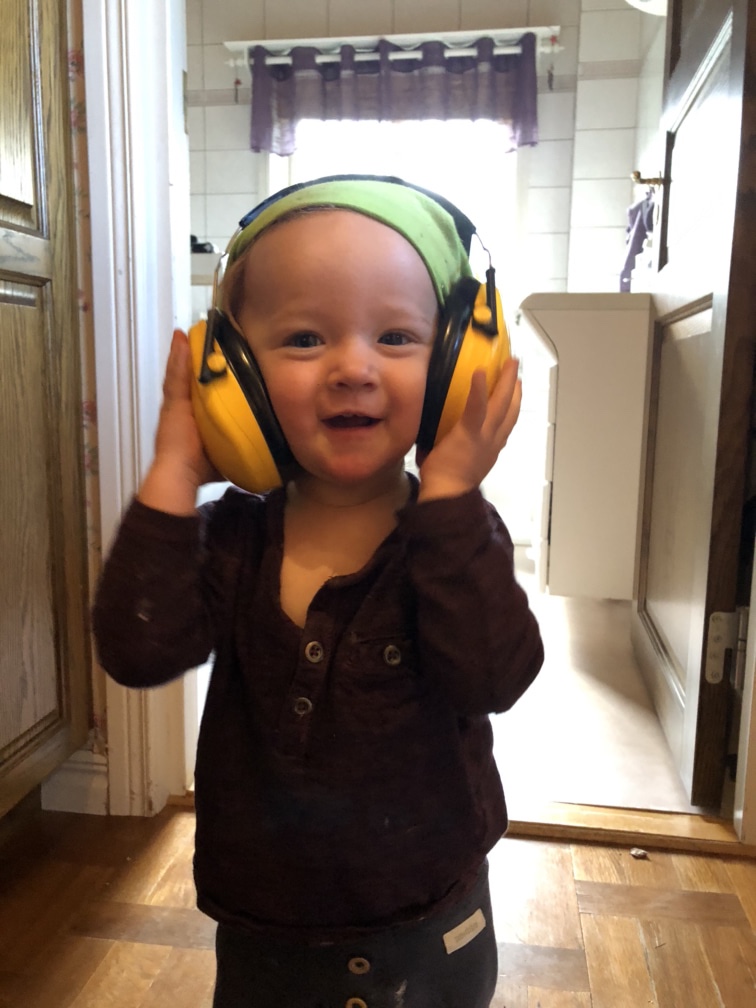 När jag kom tillbaka åt jag en snabb lunch (Loke och Axel hade redan ätit) och sen grejade vi lite i Noras rum. Vi har lite smått påbörjat renoveringen där inne. Hittills har vi lagat hålet bakom dörren, dragit ner tapeten på garderobsdörrarna, skruvat bort alla kontakter (elen är avstängd), spacklat hål och latexat sprickor taket.