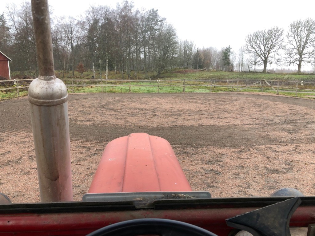 Igår åkte Axel iväg med barnen och sina föräldrar till Kaj och Tildas nya hus, bara en halvtimme från oss! Himla roligt att de hamnar där, nu befinner de sig ju i Umeå så det blir ju inte att vi träffas så ofta. Jag kunde dock inte hänga med igår, för jag hade dressyrträning inbokad! Men innan jag gjorde i ordning Kaprifol för denna gjorde jag nåt som jag faktiskt aldrig gjort förut; jag harvade banan!