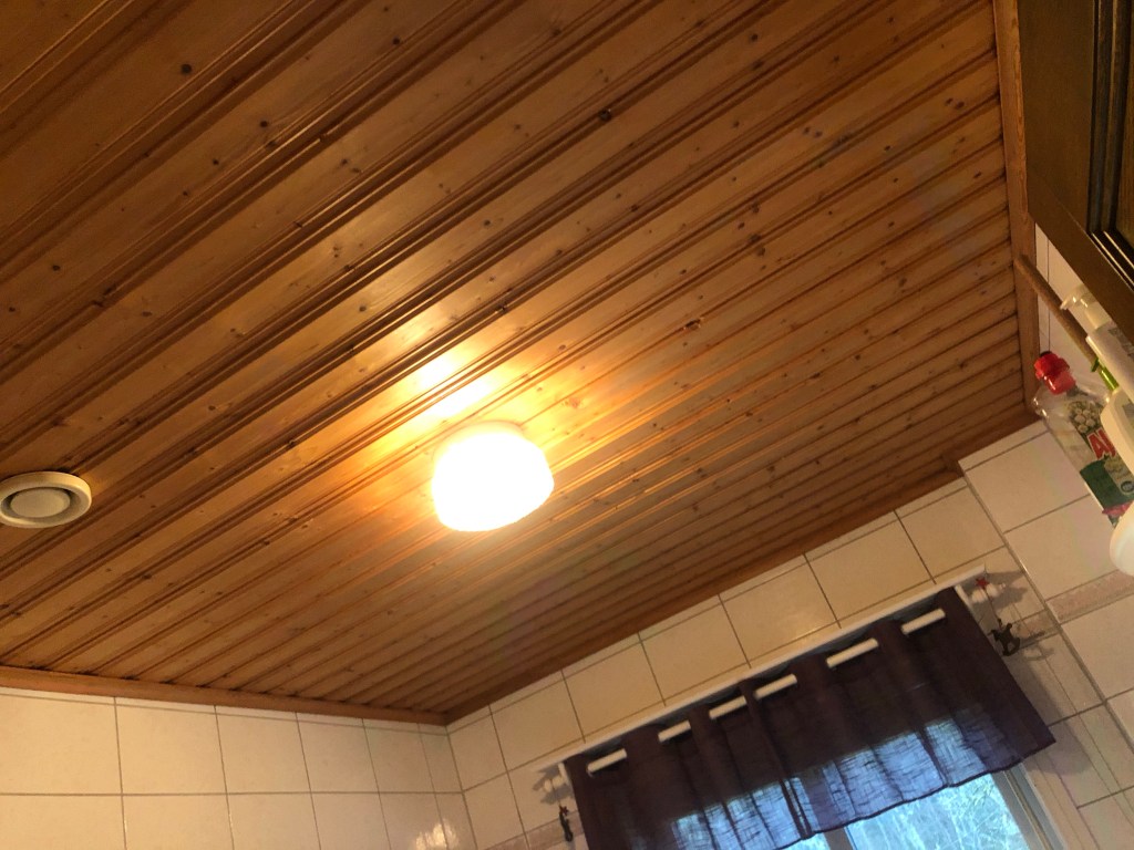 Båda hästarna fick motion av sina medryttare så jag var ju tvungen att hitta på nåt annat. Och hall-projektet står lite still i väntan på att nån ska hjälpa oss att kika lite, så det fick bli badrumstaket.