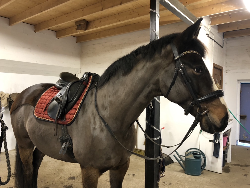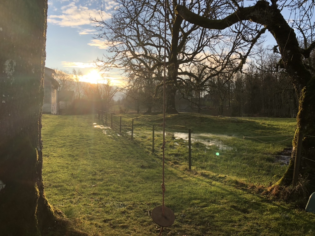Idag sken solen på förmiddagen. Barnen har gungat, djuren har fått rent och fint, Axel har försökt åtgärda geggan i hagen och så har båda hästarna fått röra på sig.