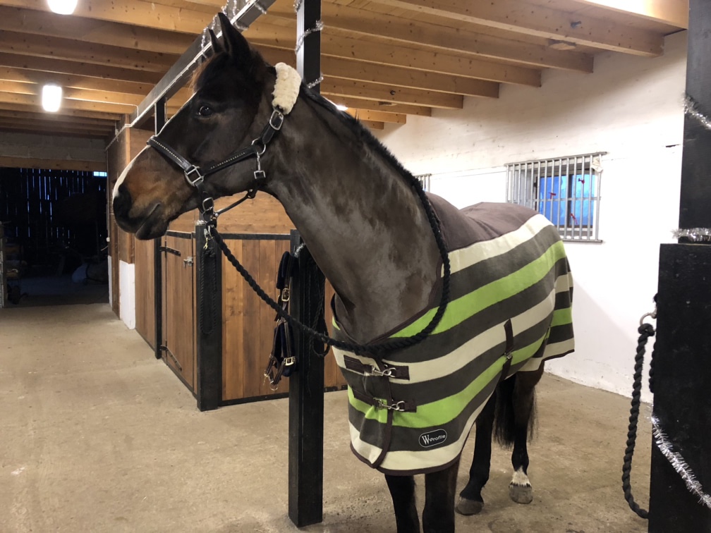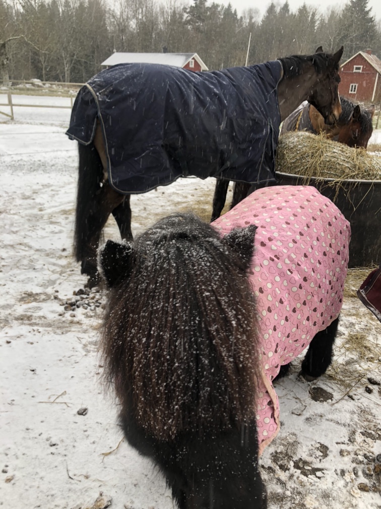 Även hemresan gick bra och snön hade redan börjat singla ner. Det väntades ju komma en del snö resten av dagen och natten så båda hästarna blev inpackade i täcken.