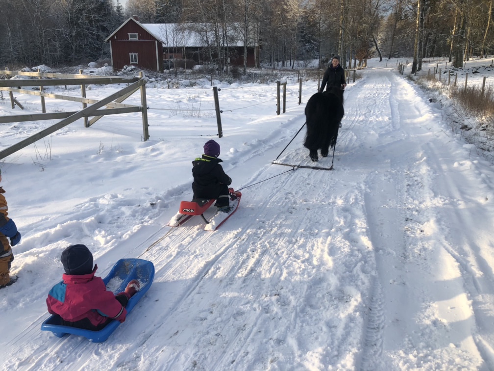 Ledig dag, snö, solsken och hästar! Klart vi skulle åka pulka!