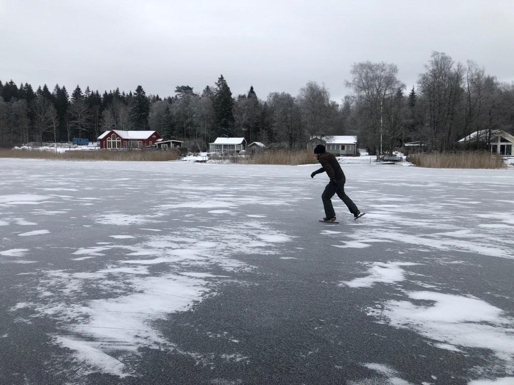 Söndagen gick i vintersportens tecken. När djuren var fixade på morgonen åkte vi ner till sjön, kittade med skridskor och lite fika.