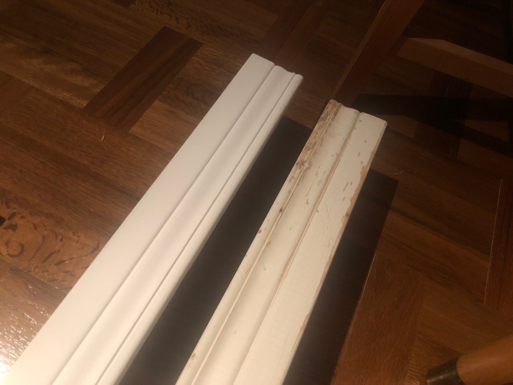 Vi är inne i en flitig period och jobbar på när barnen sover. Några av listerna blev målade häromkvällen, just hallens lister är väldigt slitna så det blir en stor tillfredställelse att måla dessa.