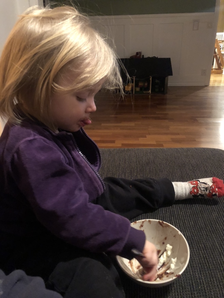 Middag blev det nån gång också, och sen avslutade vi lördagen i soffan med kladdkaka och grädde. Mums!