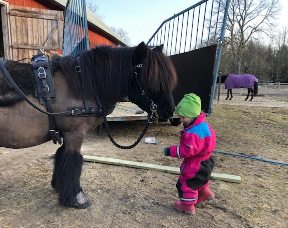 Jag tänkte att Assim skulle få en välförtjänt vilodag igår men när barnet säger ”Åka ponnyvagn!” på frågan vad han vill göra innan maten, ja då var det ju bara att sela på! Vila kan han få göra idag i stället. Bara en plusgrad men helt vindstilla i eftermiddagssolen så det var riktigt härligt ute.
