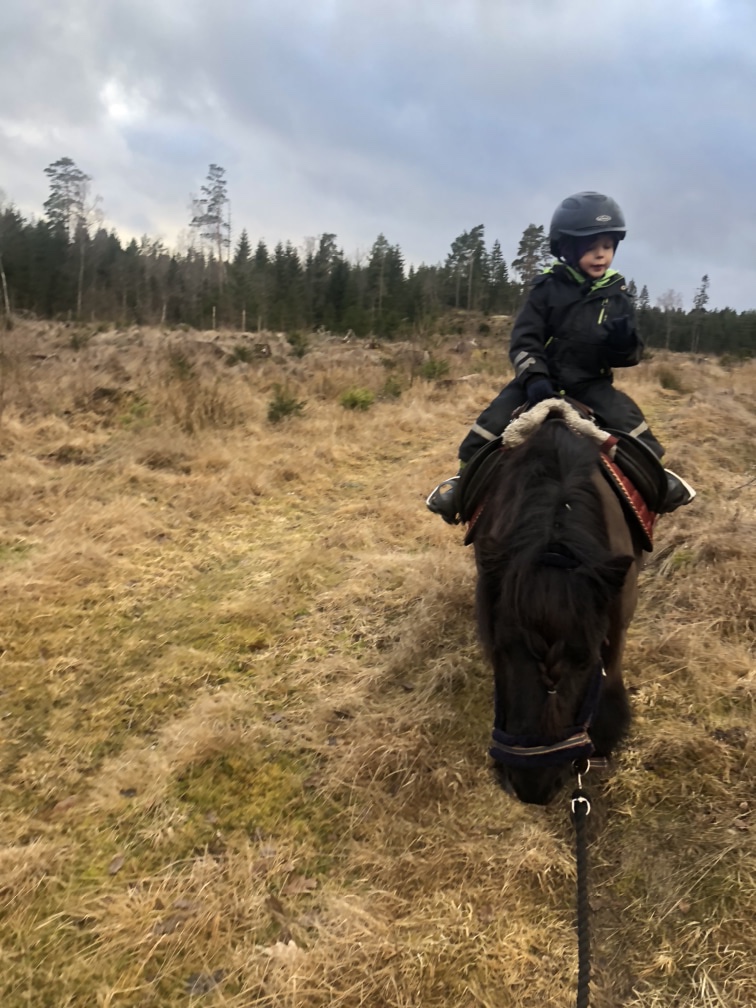 Pannkakslunch intogs och sen gick jag ut till stallet och lämnade familjen inne. Nora sov och pojkarna lekte. Jag fick sällskap av Diana så vi red ut en runda tillsammans, åtta kilometer fick vi till. Bra träning inför våra mil-rundor vi ska rida i april-maj sen. Det blir ju mycket skritt men vi travade på där det gick och Kaprifol har bra kondition så hon var fortfarande vid gott mod när vi kom hem.