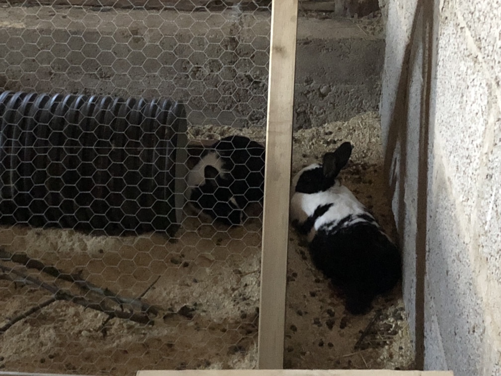Jag mockade även lösdriften och städade åt kaninerna medan jag var ute. Kaninerna är så söta mot varandra, de vilar ”ihop” på var sin sida av nätet.