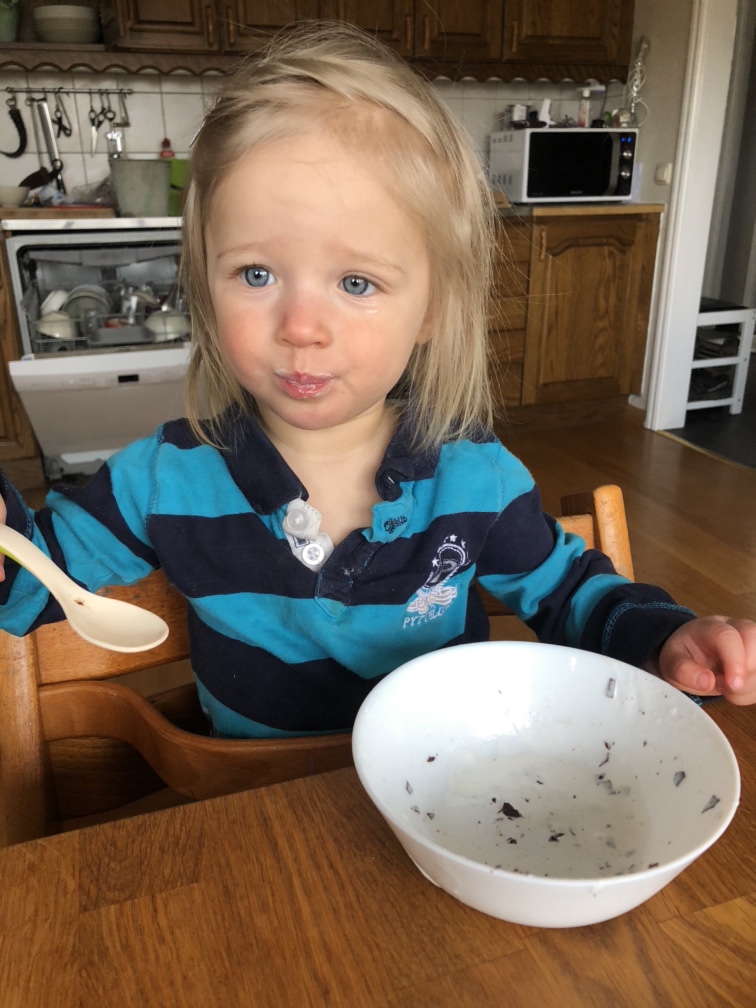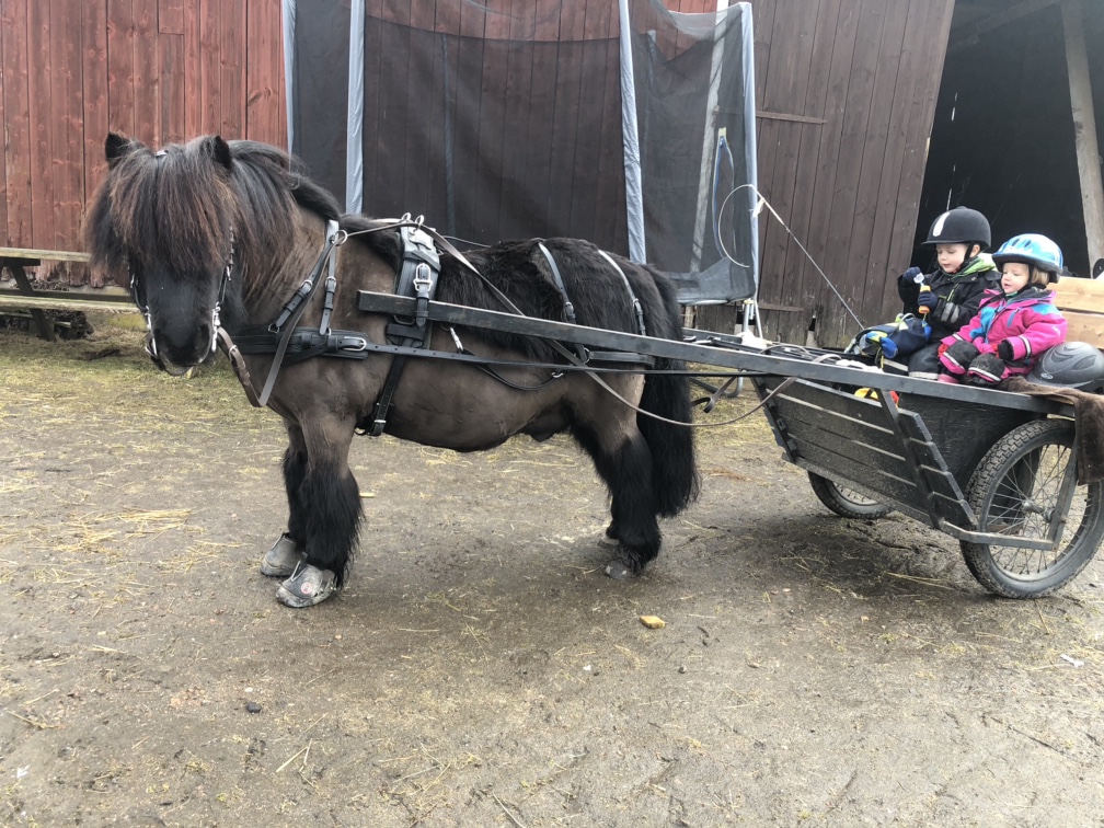Snön som kom smälte ju snabbt bort och idag har det varit lite vårväderskänsla igen. Jag och barnen inledde dagen med 6km ponnyvagn medan Axel jobbade lite med jobb på datorn. Vi provade lite nya vägar, blåste såpbubblor i skrittpauserna och hittade älgbajs. Assim var pigg och glad och pinnade på fint.