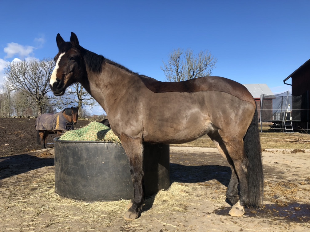 Vi gick in och åt lunch, men sen gick vi ut igen! Nora fick sova i vagnen och jag och Loke gjorde i ordning Kaprifol för ridning. ”Hoppning” stod på schemat! Loke fick sitta på under framskrittningen i skogen och sen var han en riktigt bra hjälp på marken när jag red. Han både breddade cavalettin jag lagt för tätt och höjde ett hinder åt mig, barnet börjar bli stort och användbart på riktigt! Haha.