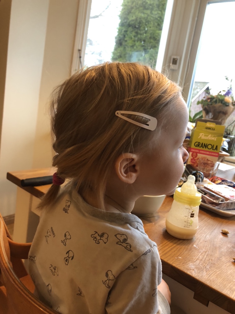 En ledig dag är till ändå, men ändå finns det fyra kvar!! Fantastiskt. Vi inledde gårdagen med frukost och premiär för fläta i håret.