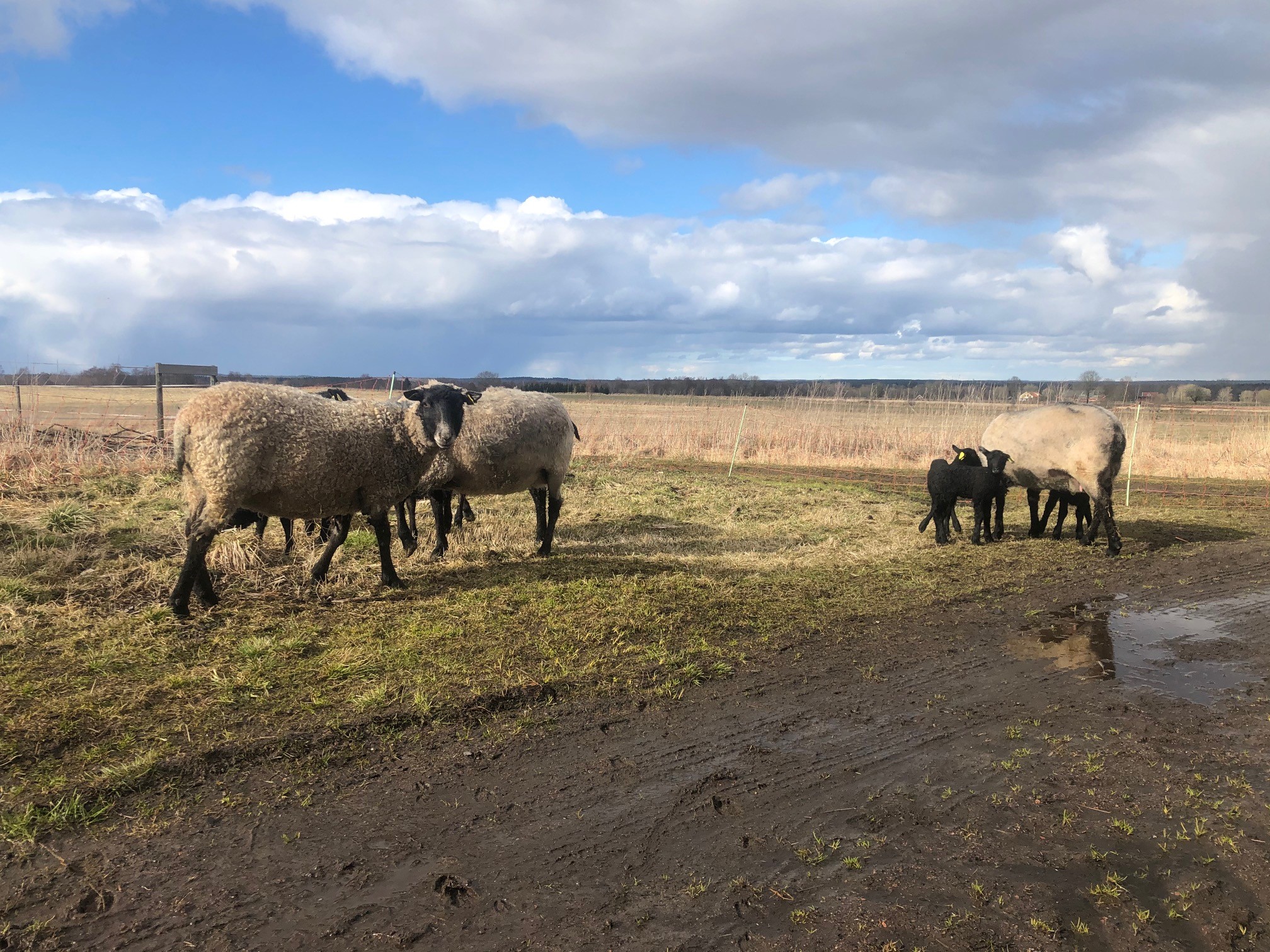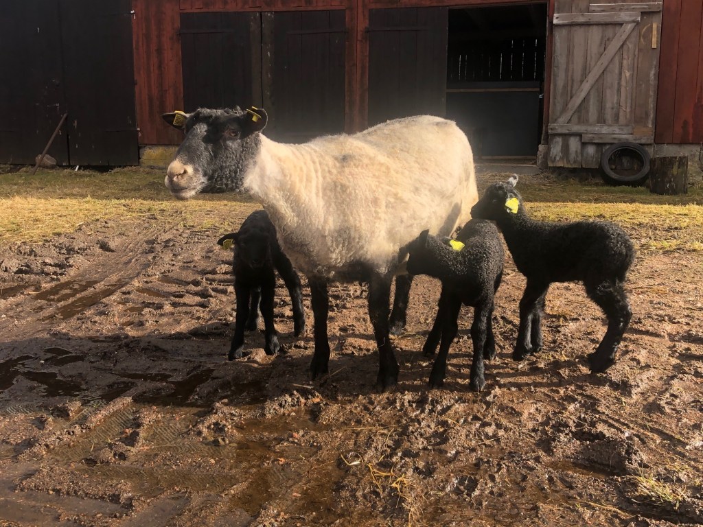 Eftermiddagen igår och starten på den här dagen känns som en belöning efter två dagars snöslask! Alla djuren på gården njöt av solen och avsaknaden av vind. Fåren fick gå ut en stund, och Blondie och hennes trillingar fick gå ihop med flocken igen efter deras dagar i egen box.