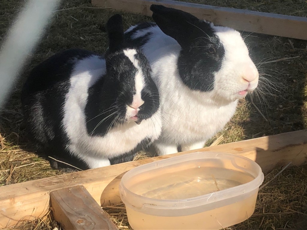 Som om det inte vore nog med tråkigheter för en dag hände en mycket tråkig olycka med kaninerna igår kväll när barnen somnat. Jag satt och städade deras bur och kaninerna blev rädda för Katla (som bara gick förbi) och de sprang panikslaget runt i hagen och in mot sitt hus. Sune missar på något sätt den 50 cm breda dörren och springer rakt in i nätväggen på buren, med bruten nacke som följd. Det fanns inget mer att göra än att Axel hjälpte mig att förkorta hans lidande. Så fruktansvärt tråkigt, så ledsen för detta. Enda förhoppningen i detta är att han gått ihop med Luna i ca fem dagar så jag håller tummarna att det kommer kaninungar om ca en månad. Det känns dock inte riktigt så av nån anledning, men det är ju bara att vänta och se.
