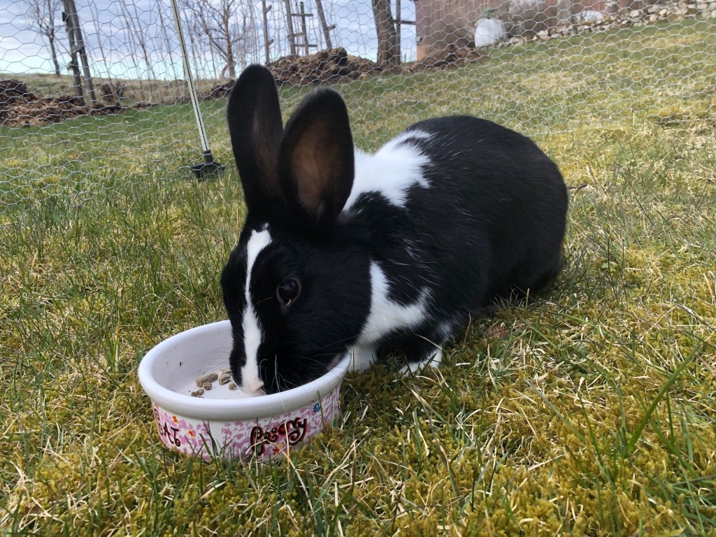 Luna fick en ny hage också med lite nytt gräs och små blad att pilla på. Än har ju inte riktigt grästillväxten kommit igång än men lite finns det ju ändå. Vi har nog även tänkt om lite angående det där med ett permanent kanin-land och klurar nu på att i stället ha ett flyttbart nät under sommarhalvåret. Lite så som vi har det nu fast lite enklare att flytta omkring på, och lite större. Då kan de äta gräs i större utsträckning och man kan utnyttja dem lite som ”gräsklippare” och ”kantputsare”. Gödslar gör de ju också!