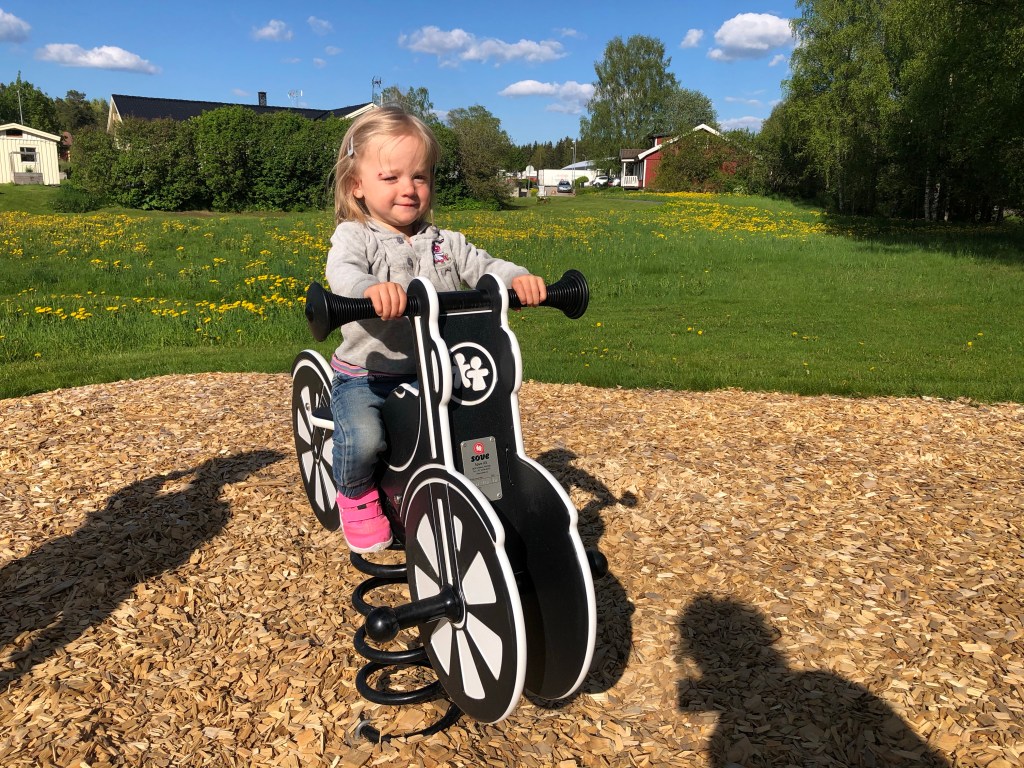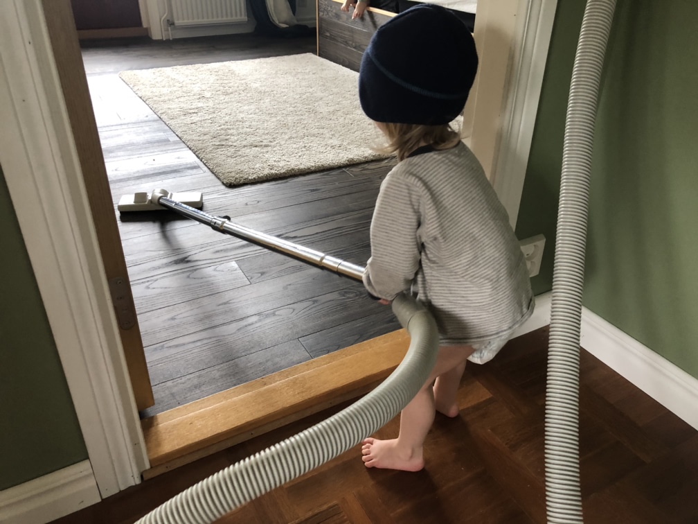 Jag måste säga att barnen har lekt väldigt bra på egen hand den här helgen. De är ju med när vi grejar och klättrar på grejer vi drar fram, sopar lite här, studsar lite på studsmattan och cyklar omkring. Men ändå väldigt självständigt! En befrielse för den här mamman får jag säga, som älskar att greja på det här viset, utan klängiga barn som bara är missnöjda haha. Sen har vi lekt tillsammans också såklart, men det har varit bra balans den här helgen.