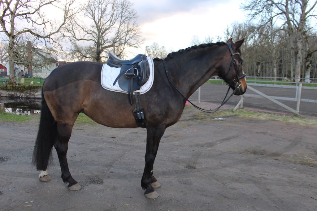 Vi skrittade fram ute och tog en galopp på ett gärde som uppvärmning innan jag red in på banan. Jag joggade igenom programmet i uppvärmningen så mormor fick provfilma och sen red jag programmet, två gånger faktiskt. Båda gångerna gick bra men jag hade henne lite mer ihop och framför skänkeln i andra programmet så det är det jag har skickat in! Hon tar dock ett litet steg bakåt i halten mitt i programmet precis när jag ska rida iväg, men så får det vara!