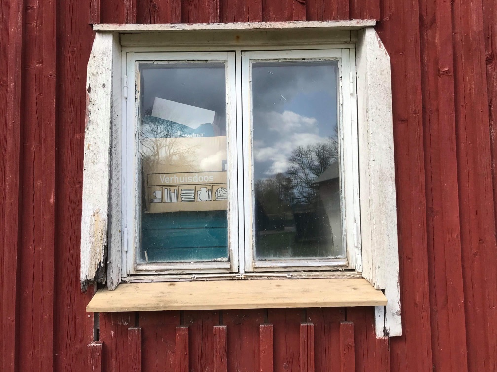 När de åkt hem sov Nora gott i vagnen och jag, mormor och Loke gick ut. Filurade runt lite och funderade på vad vi skulle hitta på när vi kom fram till ”skolans” fönster. Det har jag velat göra i ordning ända sen jag målade fasaden men det lyckas aldrig ens komma upp på att-göra-listan. Men så nu plötsligt!