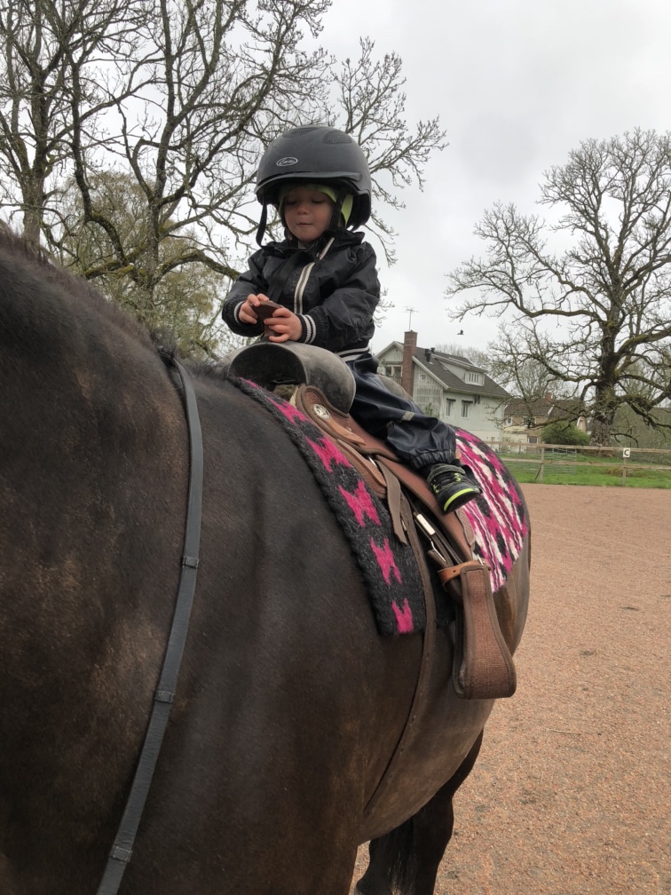 Igår lördag vaknade vi upp och åt frukost tillsammans med Peter och barnen som sovit över. Mellan regnskurarna blev det ponnyridning, fast ponnyn är ju out of function så Kaprifol fick ställa upp.