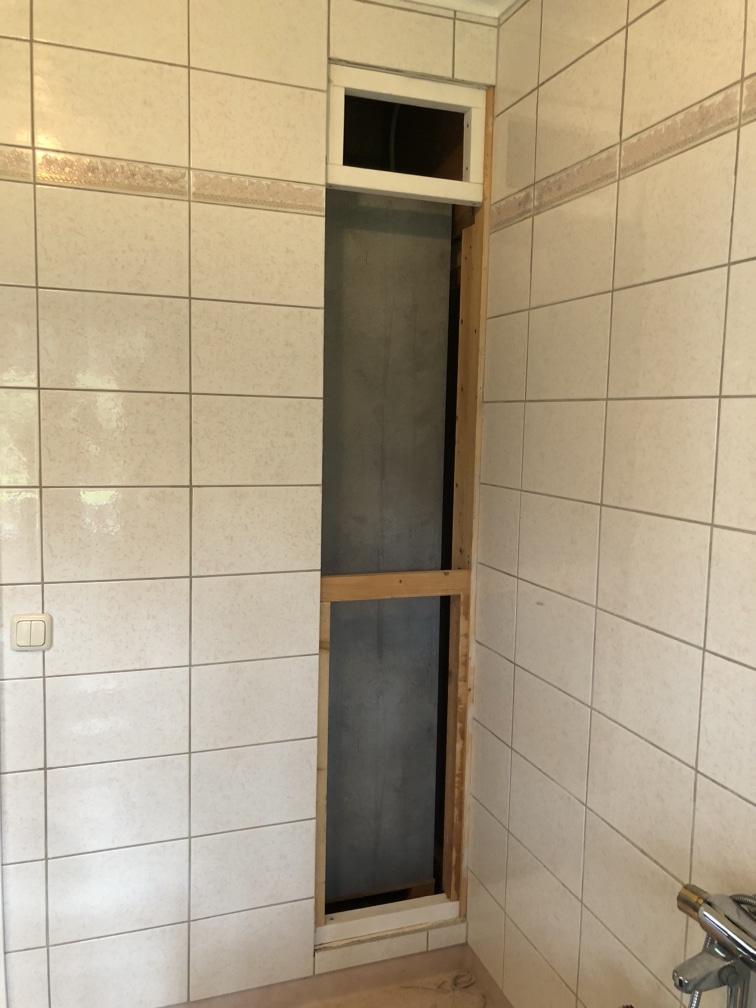 Axel började fixa lite med hålet i badrummet, det var ju änna inomhus-väder.
