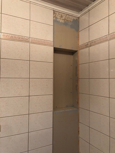 Badrums-”hålet” har fått lite spackel också, det går väldigt långsamt där inne som ni ser, det är ju ont om tid generellt och mycket som ska göras ute. Men en liten bit i taget!