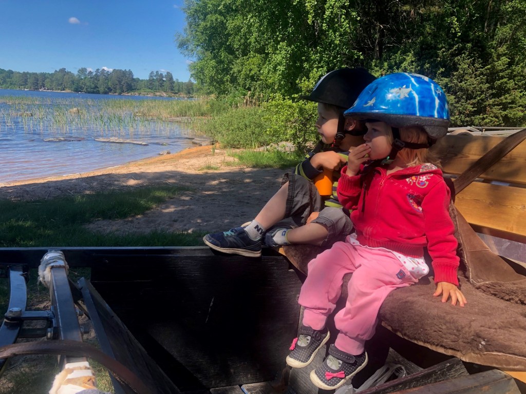 Även under söndagen blev det en runda med ponnyvagnen, denna gången via sjön där vi tog ett kort stop. Åt några vindruvor och kikade ut över det glittrande vattnet innan vi åkte vidare. Vi tar det ju väldigt lugnt med Assim ännu, så det blir mest skritt. Men mysigt nog!