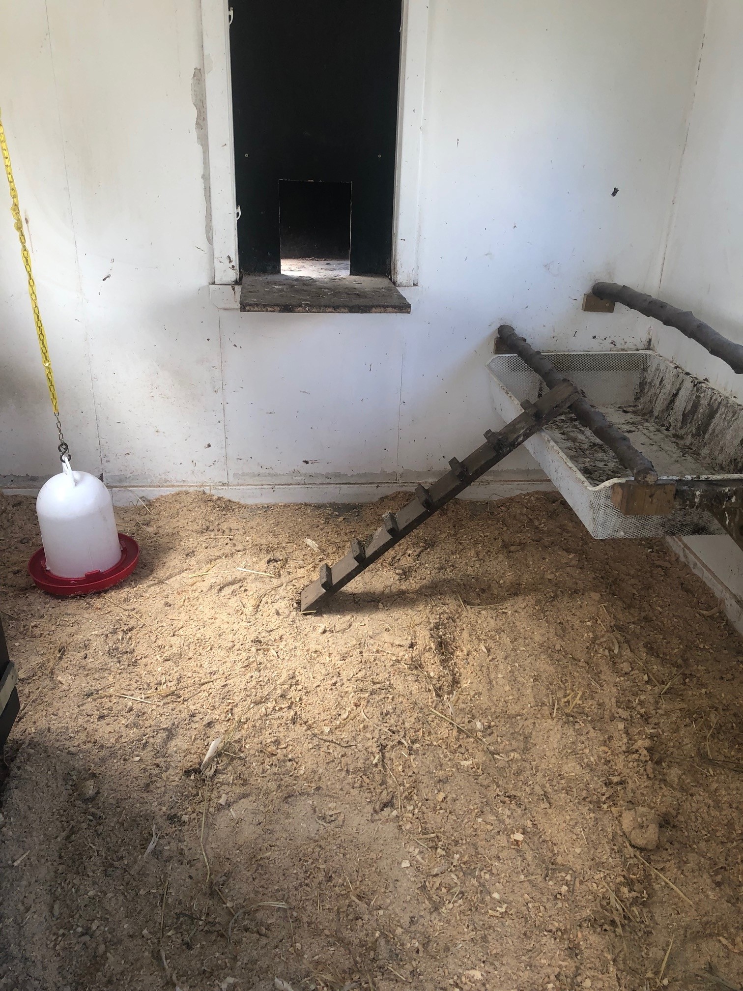 Men hon var väldigt pigg och inte i närheten av att vilja somna, så vi gav snart upp den tanken. I stället fortsatte vi leka ute, rensade lite ogräs och så hade vi storstädning i hönshuset. Allt spån togs ut och vi skubbade även bort det värsta på väggarna innan nytt spån lades in. Ordentligt vädrat blev det också med båda fönstren och dörren öppna, känns ju rätt rent när det knappt luktar höns!