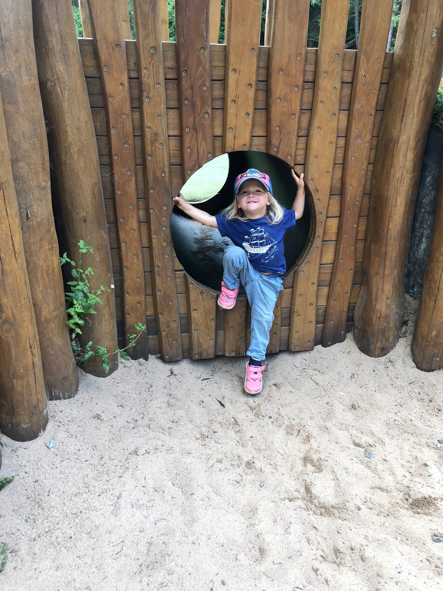 Något som Loke pratat om mycket sen han var på djurparken med pappa och Nora och några kompisar, var brandstången, så den var han snabbt uppe och klängde i. Lite imponerad över att han tog sig ner så enkelt och kontrollerat!