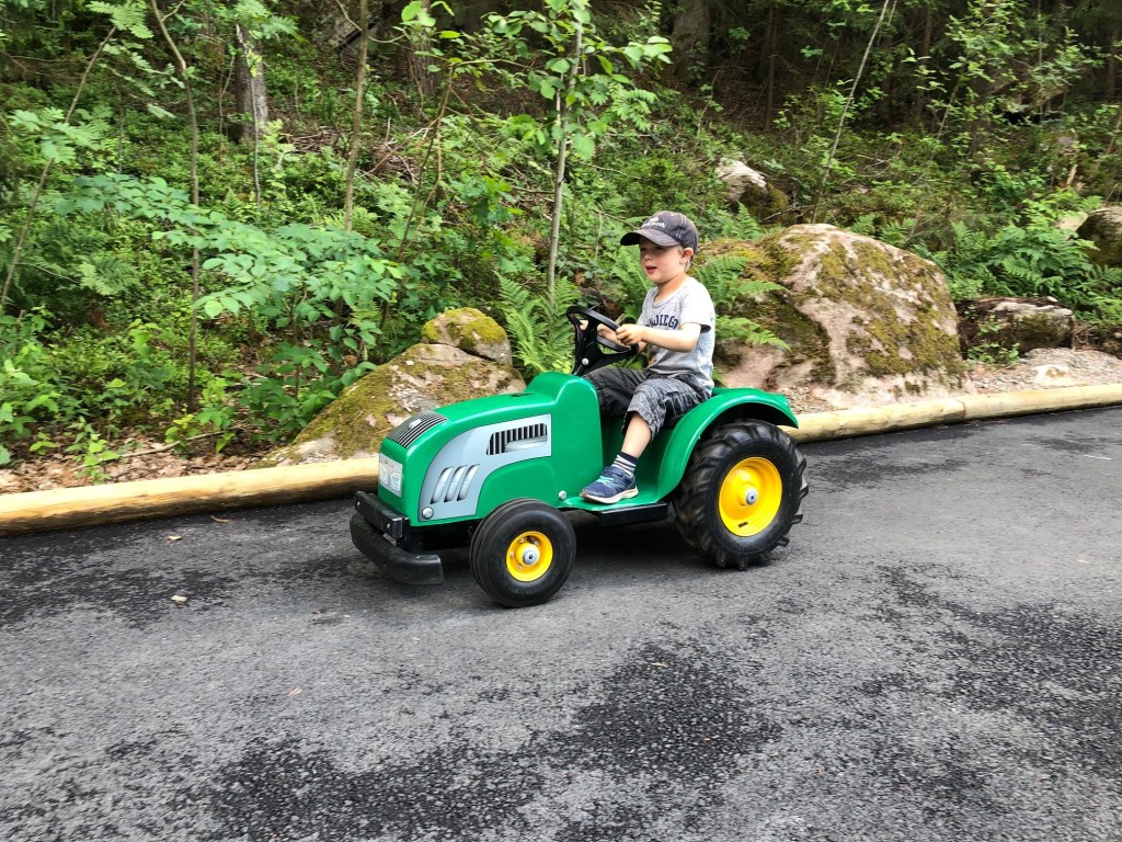 Vi lyckades titta på pingvinerna också innan traktorerna drog i Loke som en stark magnet. Det var en lycklig pojke som körde runt där inne! Nora var mindre nöjd, men hon fick sitta på en stillastående (fastmonterad) traktor i alla fall. Hon får nog räcka ner till gaspedalen åtminstone innan hon får köra själv.
