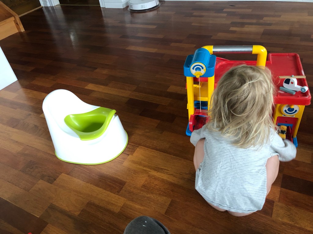 Hon fattar ju vad hon ska göra, och sätter sig gärna på pottan, men att inse att kisset är på gång innan det redan har splashat ut, ja det kommer vi få jobba på den närmaste tiden.