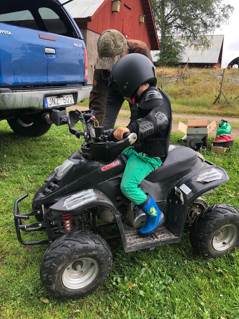 En fyrhjuling till barnen! Det dröjer väl innan Nora kan köra den men hon kanske kan sitta bakom, vi får se. Barnsligt roligt detta, bra kräm var det i den också. Nu har Axel ”strypt” den dock, så den puttrar på i lagom tempo. Loke lärde sig direkt hur man både startar och stänger av den.