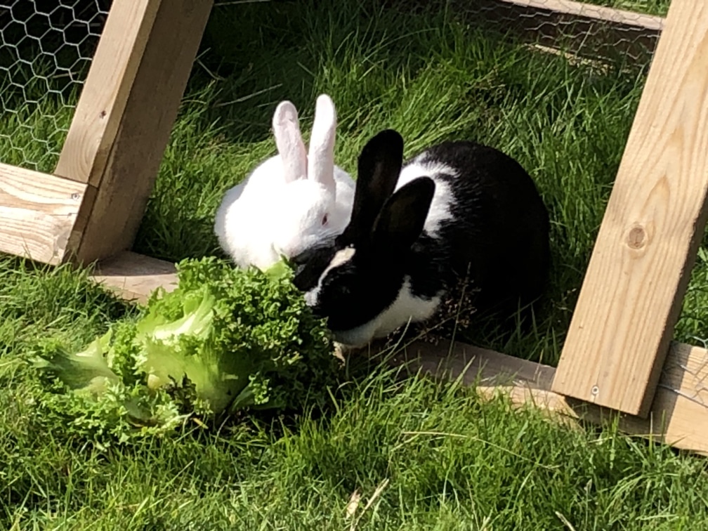 Sen fick grisarna och kaninerna mat i form av utrensad frukt och grönt från Ica i Ljung som Axel hämtat gratis kvällen innan.