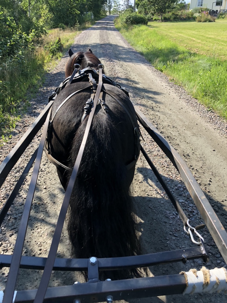 Sen kom familjen hem så mer än så hann jag inte. Vi lekte en liten stund innan jag och Loke åkte iväg med ponnyvagnen för att hämta upp Oma. Vi möttes halva vägen så Assim behövde inte trava hela vägen till Frinnestad, men en go runda för honom blev det ändå.