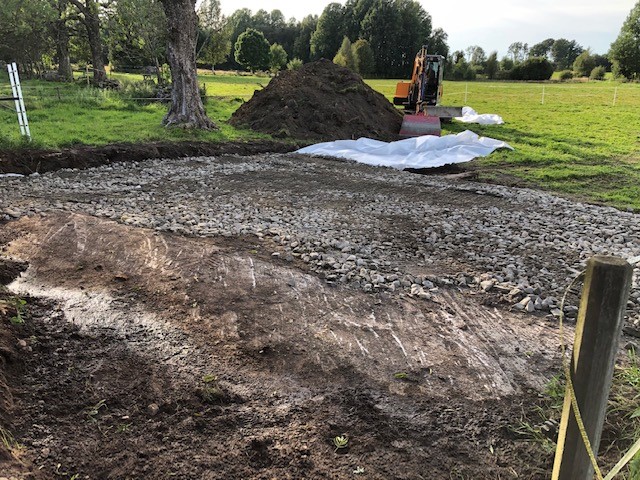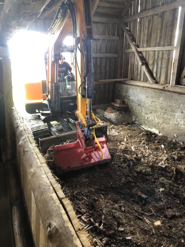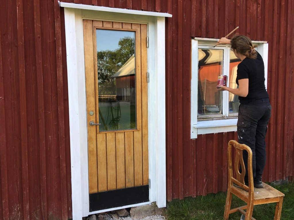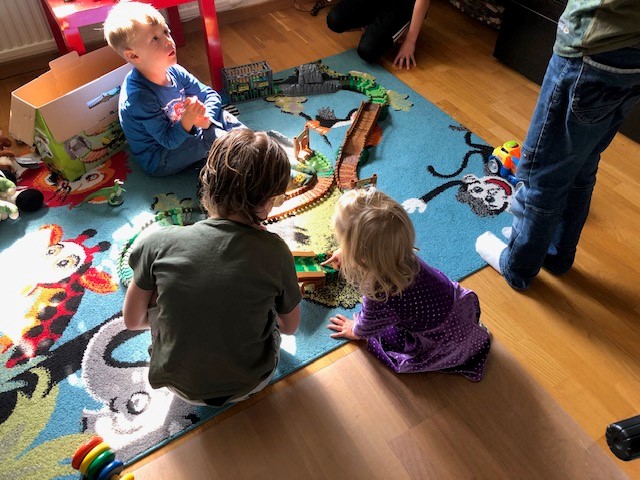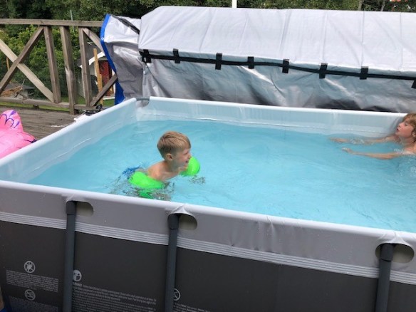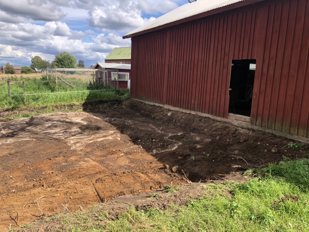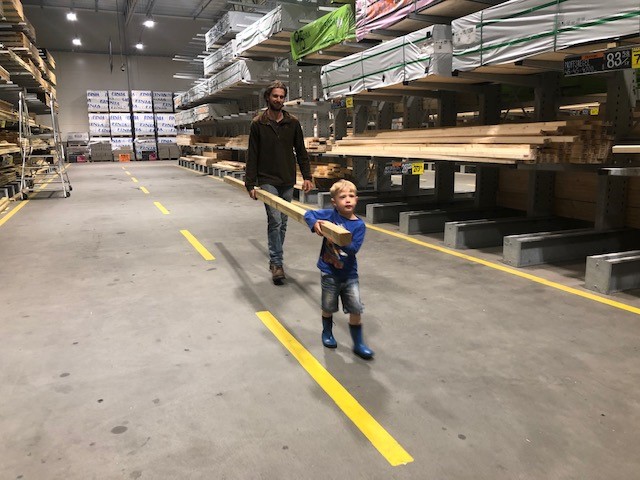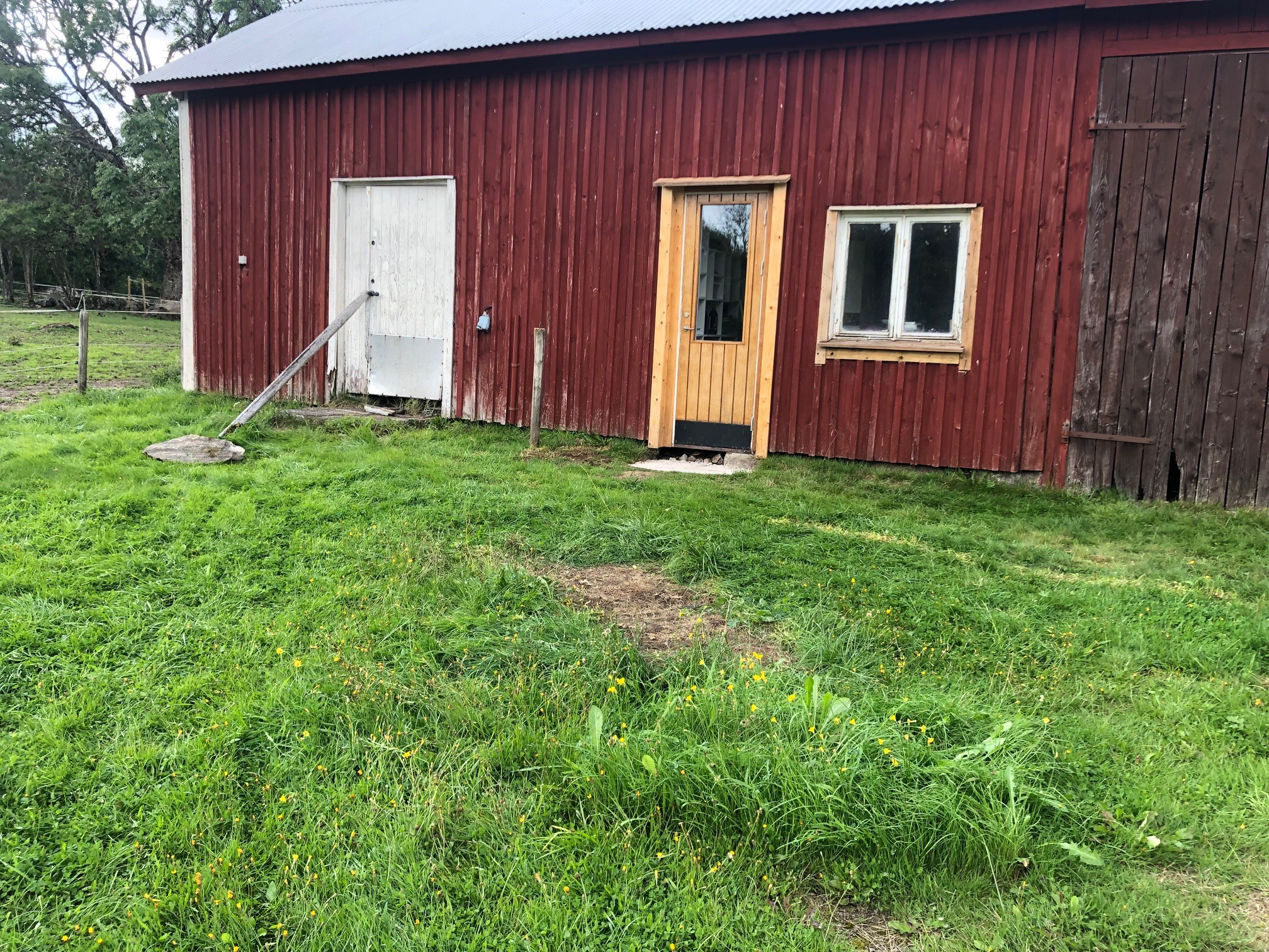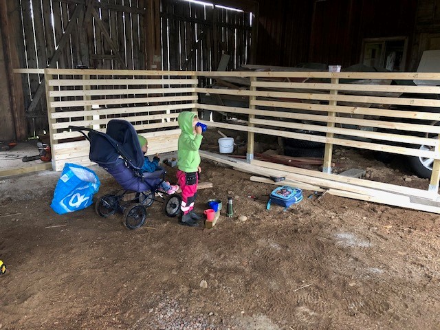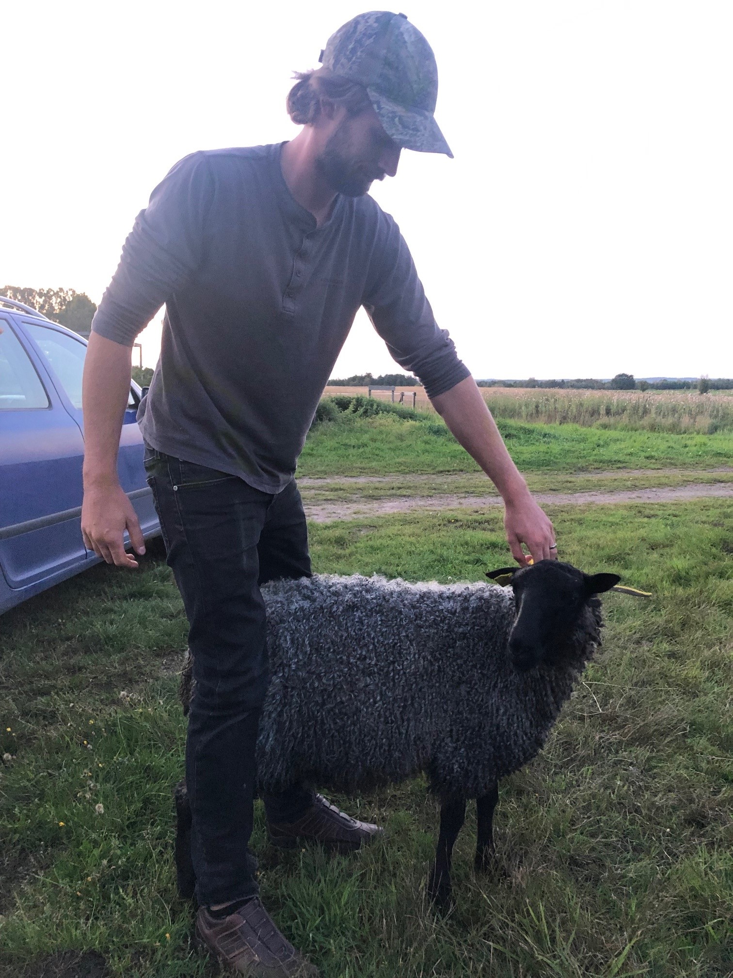 Efter gårdagens middag gick vi ut hela familjen; Axel och Nora åkte och tittade till lammen och förberedde lite stolpar och nät för nästa hage, och jag och Loke klippte gräset. Det tar ju sin lilla tid att klippa gräset, och inte går det fortare när det var alldeles för länge sen man klippte det senast. Men det blev ju lite prydligare i alla fall. När Axel och Nora kom tillbaka hade Axel fått sms om att vår bokade bagge, nr 43, var infångad och stod i en box och väntade. Ville vi hämta idag eller i morgon? Och vi är ju inte de som väntar så vi klippte klart gräset, kopplade släpet och fixade en ”box” inne hos de nya tacklammen som står i karantän. Nu skulle de få en till karantän-kompis!