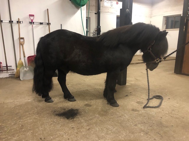 Han fick halsband på sig och leddes relativt enkelt ut till släpet, och fick skutta in i dörren i fram. Och så fick han hänga med hem!