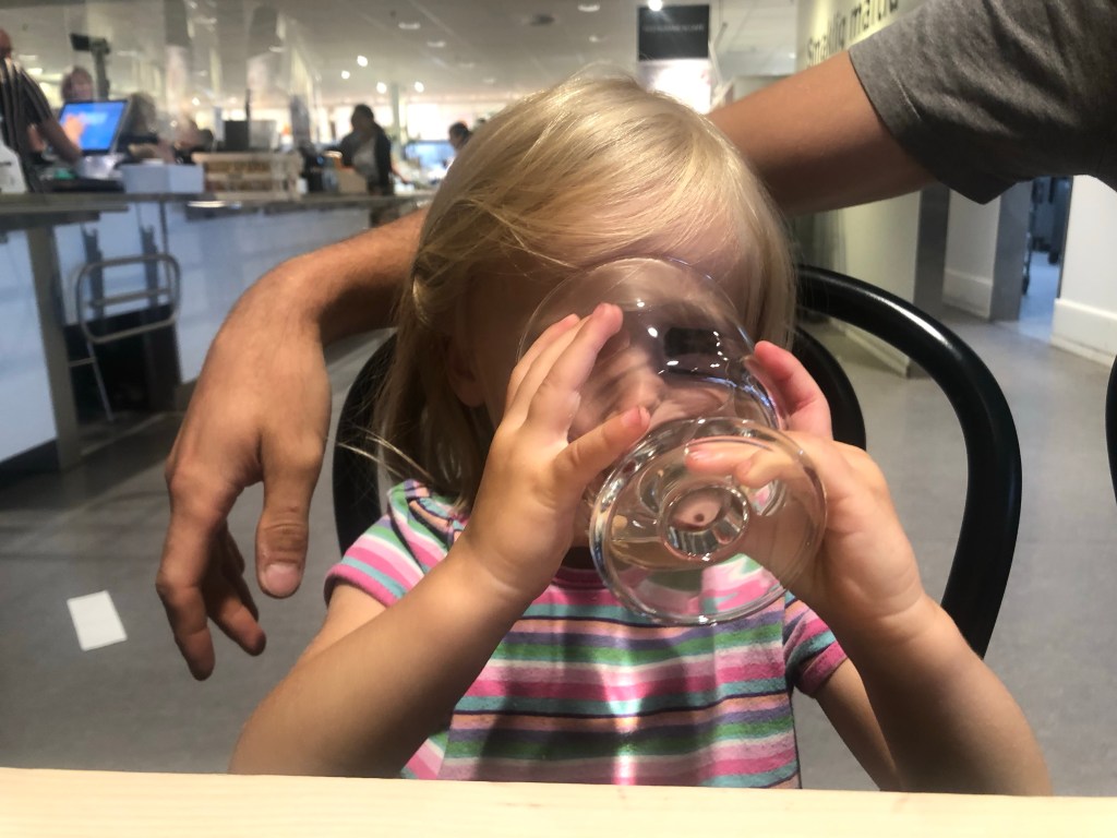 Så Kaprifol fick gå ut i hagen igen när vi kom hem, och sen bestämde vi lite hastigt och lustigt att åka till IKEA. Så vi bytte bil med Oma och farfar så vi kunde få plats med lite större grejer utan att ta släpet. Och barnen har som sagt bitvis varit änglar, bitvis inte så änglalika, men det har gått helt okej. Och Nora har kissat på toaletten två gånger och har samma kläder nu som i morse! Hon sa dessutom till i bilen på vägen hem att hon var kissnödig, så nu har vi kissat vid vägkanten också. Den största vinsten helt klart. De senaste dagarna har verkligen poletten trillar ner och hon har kissat helt själv på pottan flera gånger.