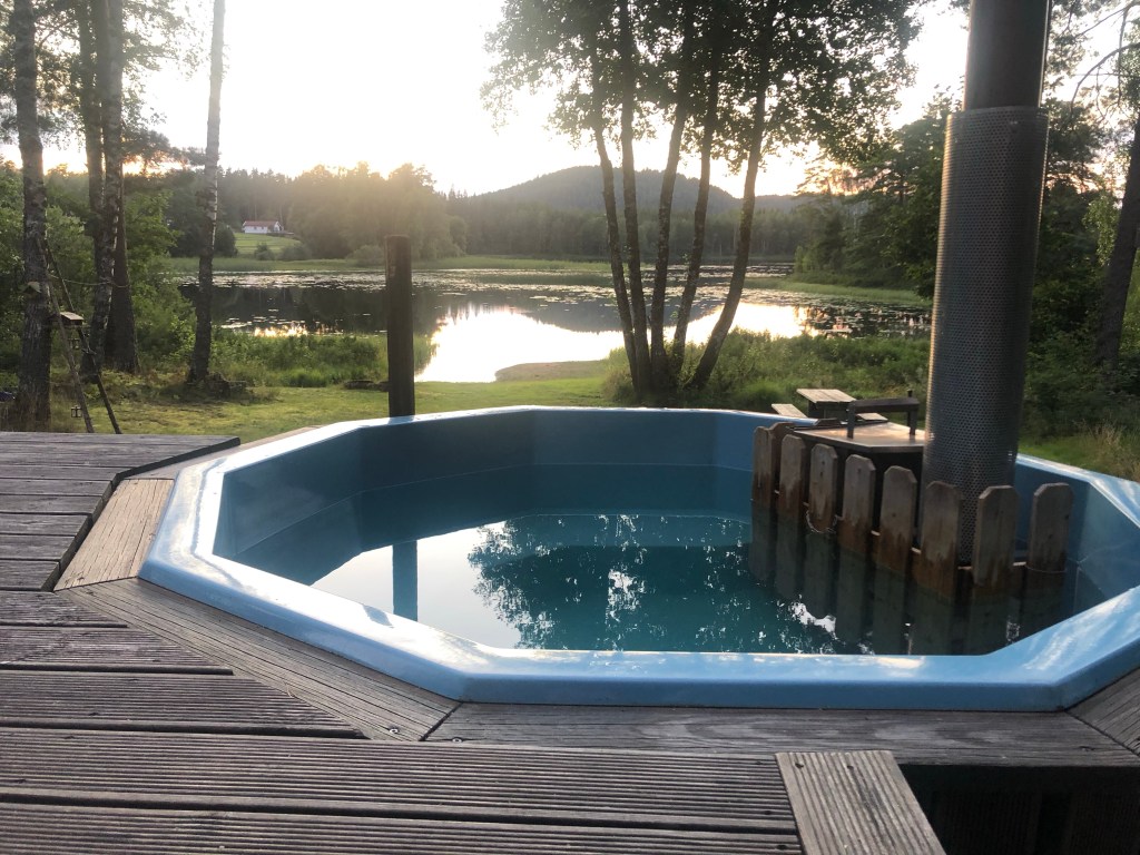 Barnen har badat både i sjön och i badtunnan och roat sig riktigt bra. Efter middag och läggdags fick även mammorna och papporna bada.