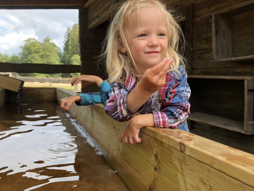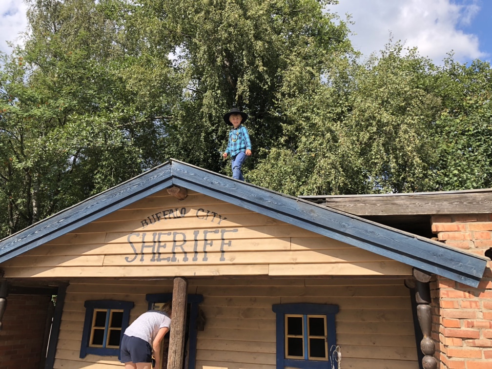 I förmiddags packade vi ihop oss och städade stugan efter oss och så åkte vi ett par kilometer bort till High Chaparall. Det var go kö in så det tog ett tag, och sen skulle vi ju köpa en hatt till Nora, och det blev en puffra till Loke också! (Som Nora fick låna lite).