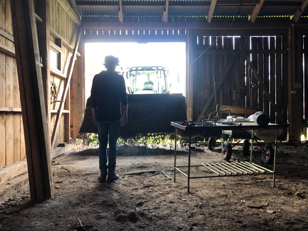 Förmiddagen gick åt till ridning av häst och lite smågrejer, men efter lunch lämnade vi av barnen hos Oma och Farfar och kavlade upp ärmarna. Nu skulle projekt Ponnylösdrift inledas lite mer på riktigt! Redan igår anlände ett litet lass grus inför dagens arbete. Även det gick ju väldigt smidigt, vi tänkte koppla kärran och åka och skyffla men så blev det så här i stället!