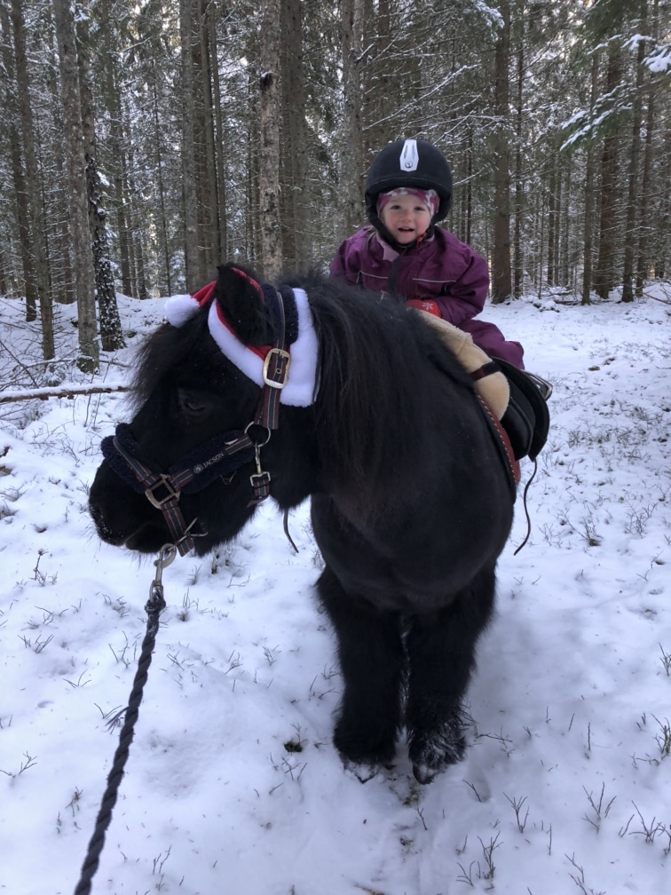 Idag har det varit soligt och fint ute, dock lite blåsigt. Jag och barnen tog en runda med ponnyvagnen på förmiddagen och jag har ridit Kaprifol också. Sen har vi bakat ”älgpluttar” av pepparkaksdeg och haft taco-kväll med Oma och Farfar.