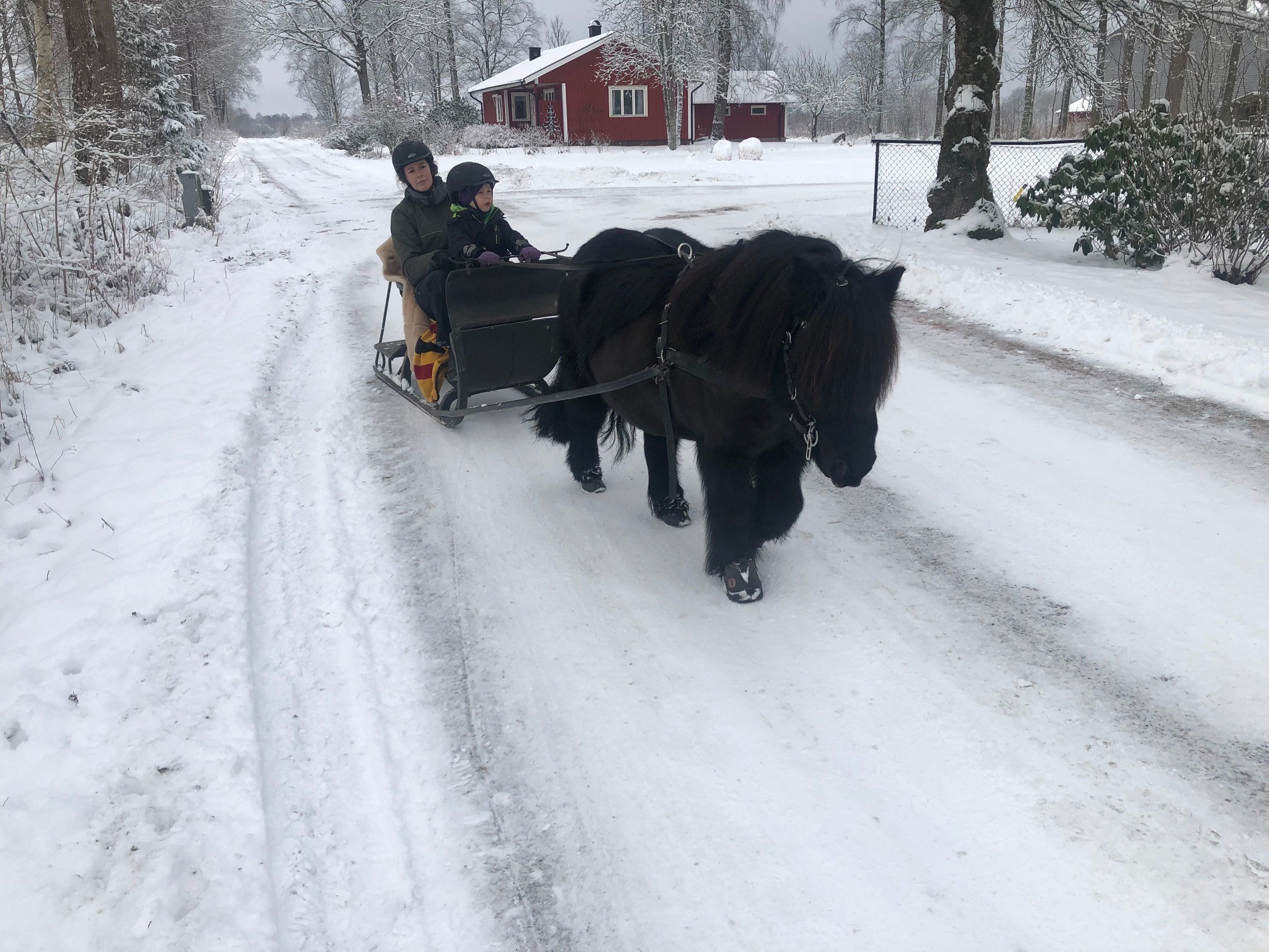 Bild från förra vinterns hämtning på förskolan med släde, kanske blir det så idag också!