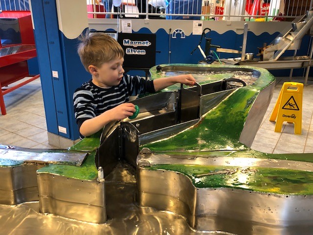 Noras favorit var vattenbanan där man kunde få badankor och båtar att åka iväg i olika banor och justera vattenflödet så de åkte olika fort. Just det sistnämnda brydde sig inte Nora så mycket om, hon var nöjd med att springa fram och tillbaka med ankorna och låda de ömsom bada, ömsom sitta på kanten.