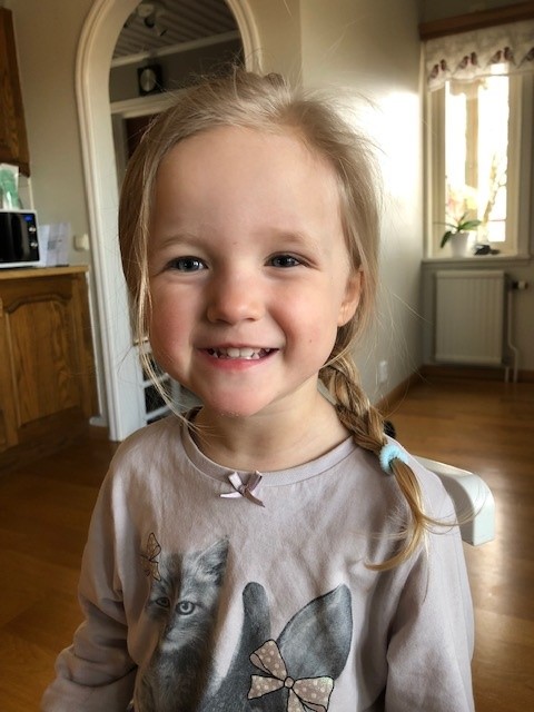 Även våra egna avkommor käkar och växer, och utvecklas på alla sätt och vis. Nora har börjat prata mycket ”renare” det senaste och ordförrådet är det verkligen inget fel på. Hon är sällan tyst och har mycket att berätta! Det låter väldigt roligt när hon tar efter storebrors (och vuxnas) utryck och meningar. Hon är även fruktansvärt envis och bestämd gällande vad hon ska ha på sig och hur håret ska vara. Klädmässigt är det den lila klänningen som gäller, och max 1-2 hårspännen i håret. INGEN TOFS! Här lyckades jag dock lura på henne en ”Elsa-fläta”.