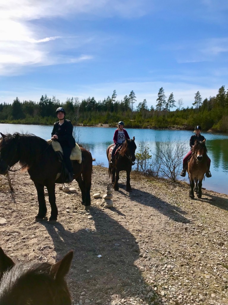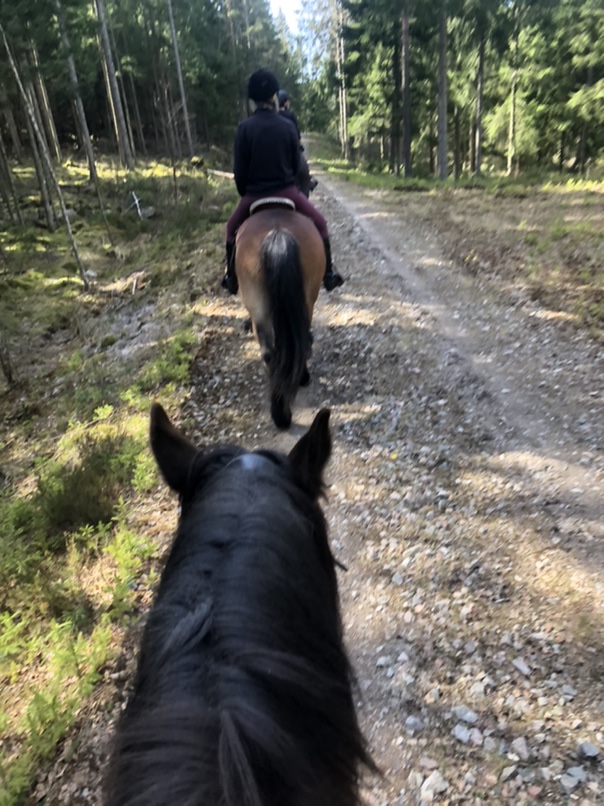 Det var en trevlig runda i fin natur, jag hade önskat lite mer energi hos min häst men han tuffade på i sitt ganska så orubbliga (under)tempo. Det blir ju lite ridskola/följa John-ridning där alla hästar gör som ledarhästen eller turledaren säger, och det är ju lite meningen på ett sätt för det ger ju alla möjligheten till att delta i en sån här aktivitet. Men lite tråkigt var det för mig att sitta på en häst som krävde ganska stor insats för att ens fundera på vad jag hade för åsikter. Men det var ju inte huvudsyftet med turen heller, så sammantaget var den en roligt grej!