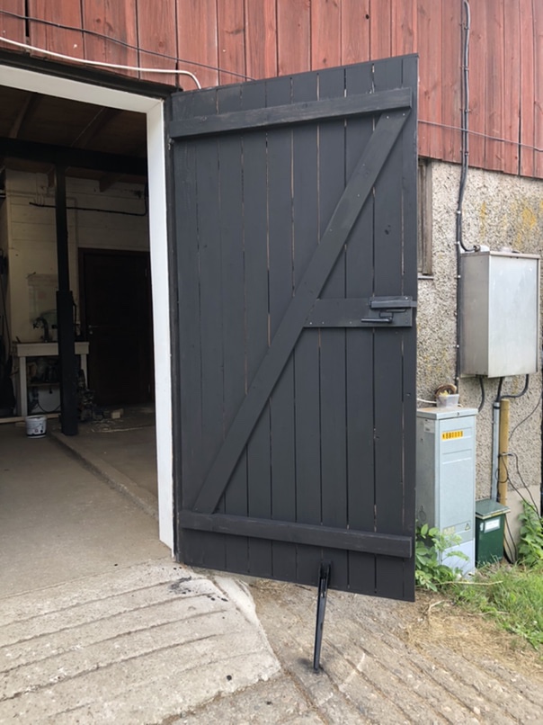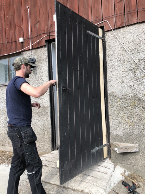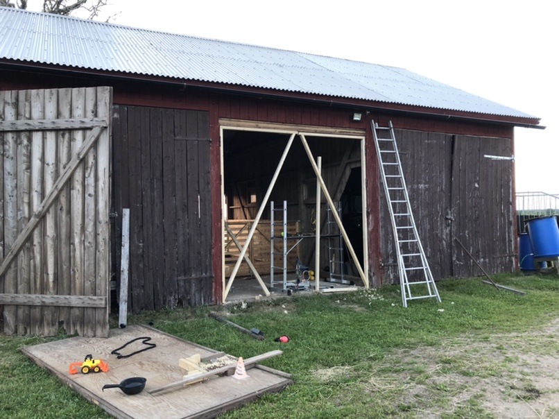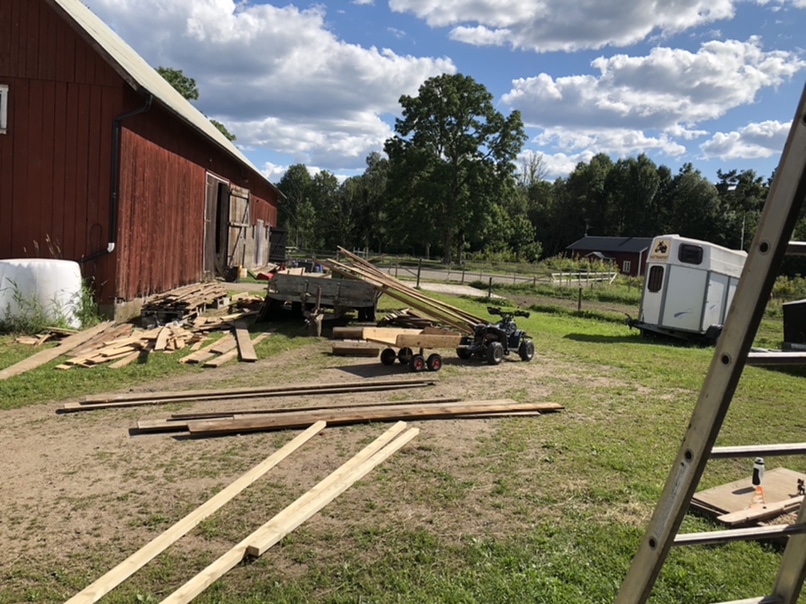 Resten av dagen har tillbringats på gården, det är ett bombnedslag där just nu! Vi både håller på att bygga en dörr samt att vi tömmer och sorterar brädhögen som legat på traktorkärran sen jag vet inte när. En del brädor har vi plockat fram och högtryckstvättat för att använda till den nya dörren.
