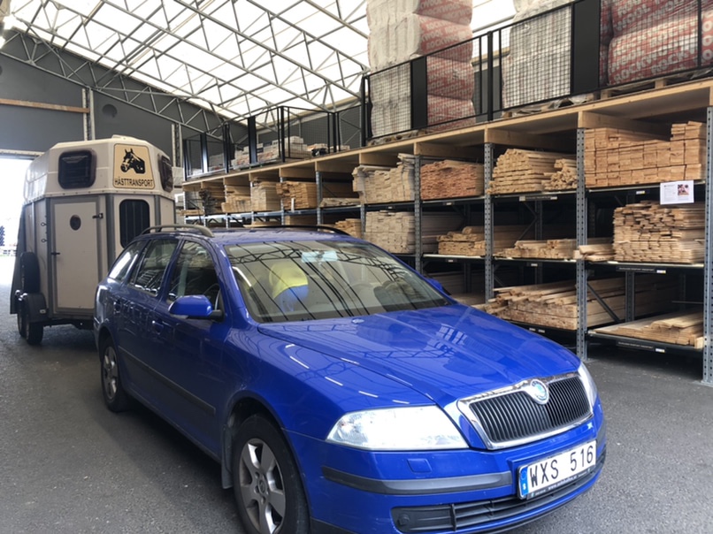 Det var allt ett tag sedan vi ”storhandlade” på byggvaruhandeln senast, men nu var det dags igen. Kärran kopplades på och vi körde till XL bygg i Vårgårda. Det blev ett gäng reglar och två skivor. Projekten som är i startgroparna är renovering av stalldörren och den stora ladugårdsporten. Sen ska vi bygga en dörr mellan stallet och ladan (äntligen!) och så blir det nya portar till Lilla lösdriften. De andra portarna får vi kika närmare på i nästa steg, men jag tror att de går att renovera i stället för att byta ut.